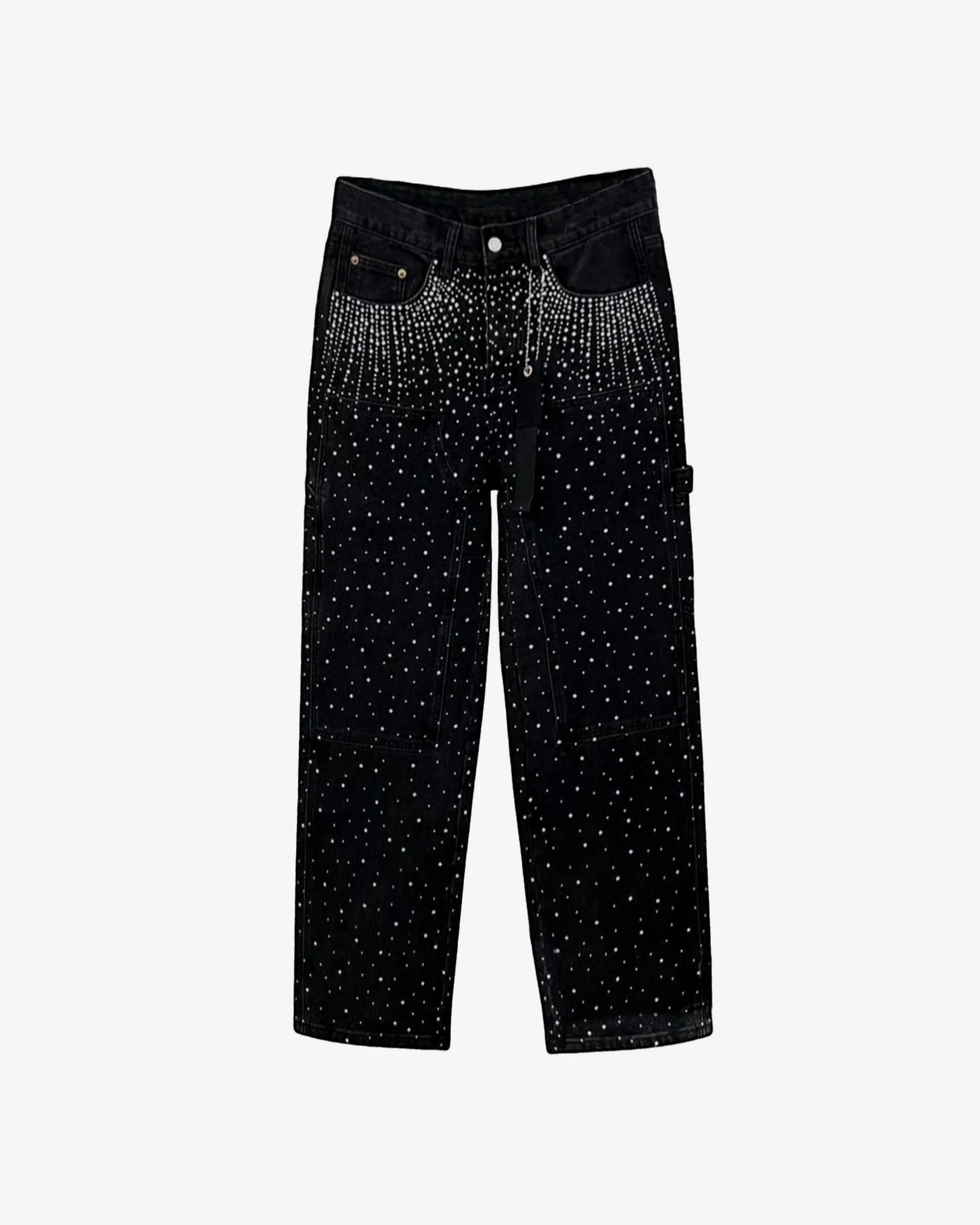 jean noir en denim orné de strass